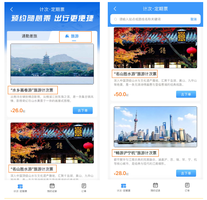 此次推出的“畅游沪宁杭”“名山胜水游”“水乡画卷游”等3款旅游计次票产品,涉及宁杭高铁、沪苏湖高铁、杭温高铁、杭黄高铁、沪宁城际等5条高铁线路的26座车站,以“1次购买、分段乘坐、15天有效”的全新组合售卖模式,为广大旅客提供便利、优惠、自由的乘车新体验。“畅游沪宁杭”产品通过将上海、南京、杭州等长三角核心城市与苏州、无锡、溧阳、湖州、嘉兴等江南水乡城市“串珠成线”,让旅客深度体验长三角的繁华与古朴。“名山胜水游”产品汇集西湖风景名胜区、千岛湖风景区、黄山风景区、九华山风景区等多个国家5A级旅游景区和世界遗产名录收录的自然景观,为旅客呈现一场顶级山水间的“视觉盛宴”。“水乡画卷游”产品一路集齐古镇(南浔)、影视(横店影视基地)、江海(楠溪江、东海)等人文元素,让旅客犹如在一幅江南画卷中穿行。