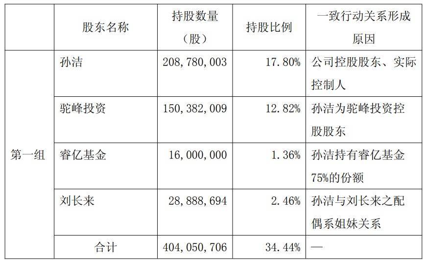 截止公告日汇巨福配资,公司董事长刘长来持有公司股份28,888,694股,占公司总股本的2.46%;公司控股股东、实际控制人孙洁及其一致行动人湖北驼峰投资有限公司(以下简称“驼峰投资”)、上海睿亿投资发展中心(有限合伙)—睿亿投资揽月六期私募证券投资基金A(以下简称“睿亿基金”)、刘长来合计持有公司股份404,050,706股,占公司总股本的34.44%。